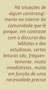 Isso cria situações de algum constrangimento no interior da comunidade que lê porque, em contraste com o discurso dos biblistas e dos estudiosos, tais leituras são, frequentemente, muito imediatistas, muito em função de uma necessidade precisa.