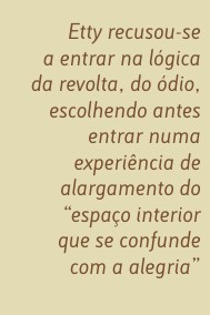 Este altruísmo, que significou uma recusa de intervir activamente para se salvar (a própria ideia de se “salvar”, diz a certa altura, “parece-lhe absurda e torna-a infeliz”), foi criticado pelos seus próximos e fez do seu diário um caso extremo de «amor fati», de aceitação paciente do destino, algo que haveria de tornar-se objecto de uma longa discussão – em termos de responsabilidade perante a tragédia da sua época – dessa ética da passividade face à perseguição. Não é que Etty Hillesum renuncie a resistir, a indignar-se, a exercer o juízo mais severo face aos carrascos. Mas recusou-se a entrar na lógica da revolta, do ódio, escolhendo antes entrar numa experiência de alargamento do “espaço interior que se confunde com a alegria”. E mesmo quando as suas forças físicas chegam á exaustão, ela continua a dar provas de que nada pode alienar a sua liberdade interior e quebrar a radical “paciência” que lhe permite dar hospitalidade a tudo, a pensamentos e emoções, tanto seus como dos outros. Sirva de exemplo o que escreveu a 3 de Outubro de 1942, quando estava, como voluntária, em trabalho humanitário, no campo de Westerbork, de onde os judeus holandeses “transitavam” para Auschwitz: “claro, é o extermínio total, mas suportemo-lo sobretudo com graciosidade. Não existe um poeta dentro de mim, há sim um pedaço de Deus em mim que poderia desenvolver-se até se tornar poeta. Num campo assim tem de haver contudo um poeta que experiencie a vida lá, lá também, e que como poeta a possa cantar.”