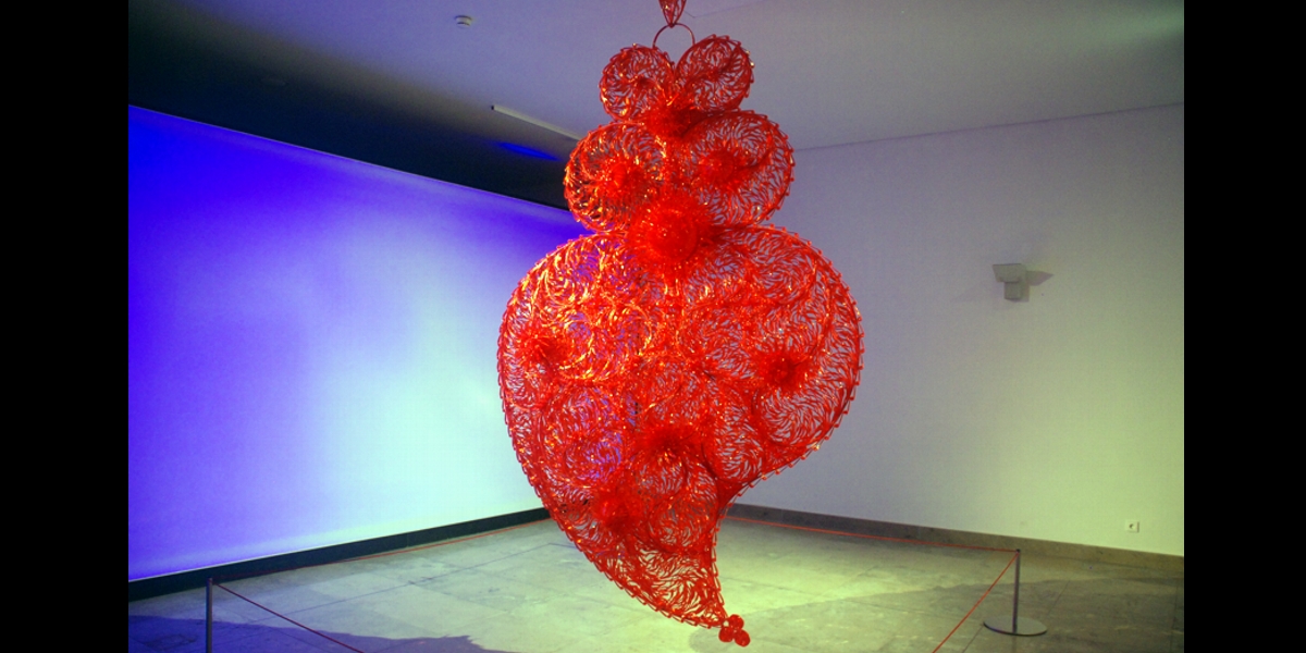 "Coração independente vermelho #2", de Joana Vasconcelos, é uma das cerca de 120 peças incluídas na exposição "As cores do sol: a luz de Fátima no mundo contemporâneo", «a mais ambiciosa que o Santuário de Fátima já promoveu».