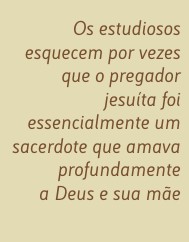 O autor desta primeira biografia de Vieira dá-nos uma visão bastante completa do jesuíta a quem os índios do Brasil já chamavam “homem grande”. Não falta na obra uma análise do amor de Vieira a Deus e à Igreja. Há mesmo um estudo intitulado «Da sua devoção a Maria Santíssima».