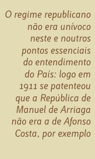 No entanto, o regime republicano não era unívoco neste e noutros pontos essenciais do entendimento do País: logo em 1911 se patenteou que a República de Manuel de Arriaga não era a de Afonso Costa, por exemplo. Assim como, entre os católicos, as tensões do século XIX, distinguindo os que aceitavam e os que rejeitavam o Portugal liberal, de algum modo se prolongaram entre os que admitiam a secularidade do Estado e os que a repudiavam, propugnando ainda por uma monarquia confessional: assim, já nos anos vinte, a polémica entre António Lino Neto, deputado católico no parlamento republicano e Fernando de Sousa, jornalista católico e monárquico.