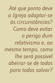 Apresenta-se nesta altura uma questão espinhosa: a adaptabilidade da missão da Igreja à vida dos homens num dado momento, ou lugar, numa dada cultura e situação social.