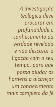 Os que se dedicam às ciências teológicas nos Seminários e Universidades, procurem colaborar com os especialistas doutros ramos do saber, pondo em comum trabalhos e conhecimentos. A investigação teológica deve simultaneamente procurar um profundo conhecimento da verdade revelada e não descurar a ligação com o seu tempo, para que assim possa ajudar os homens formados nas diversas matérias a alcançar um conhecimento mais completo da fé. Esta colaboração ajudará muitíssimo a formação dos ministros sagrados. Estes poderão assim expor de maneira mais adequada aos homens do nosso tempo a doutrina da Igreja acerca de Deus, do homem e do mundo; e a sua palavra por eles melhor acolhida. É, mesmo de desejar que muitos leigos adquiram uma conveniente formação nas disciplinas sagradas e que muitos deles se consagrem expressamente a cultivar e aprofundar estes estudos. E para que possam desempenhar bem a sua tarefa, deve reconhecer-se aos fiéis, clérigos ou leigos, uma justa liberdade de investigação, de pensamento e de expressão da própria opinião, com humildade e fortaleza, nos domínios da sua competência.