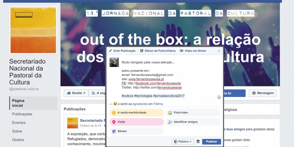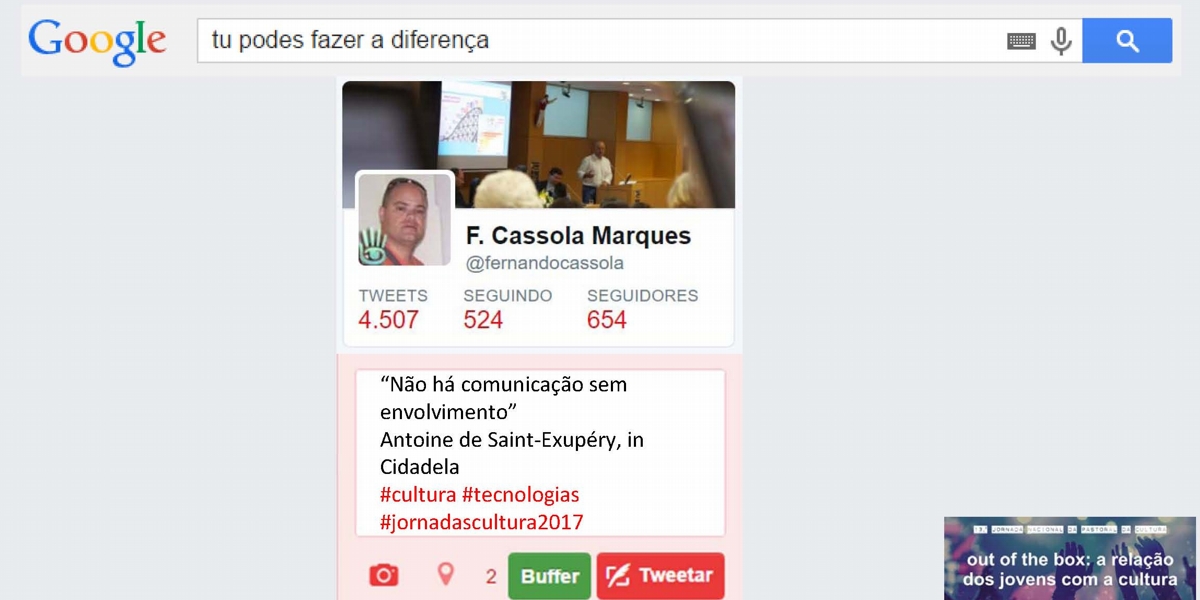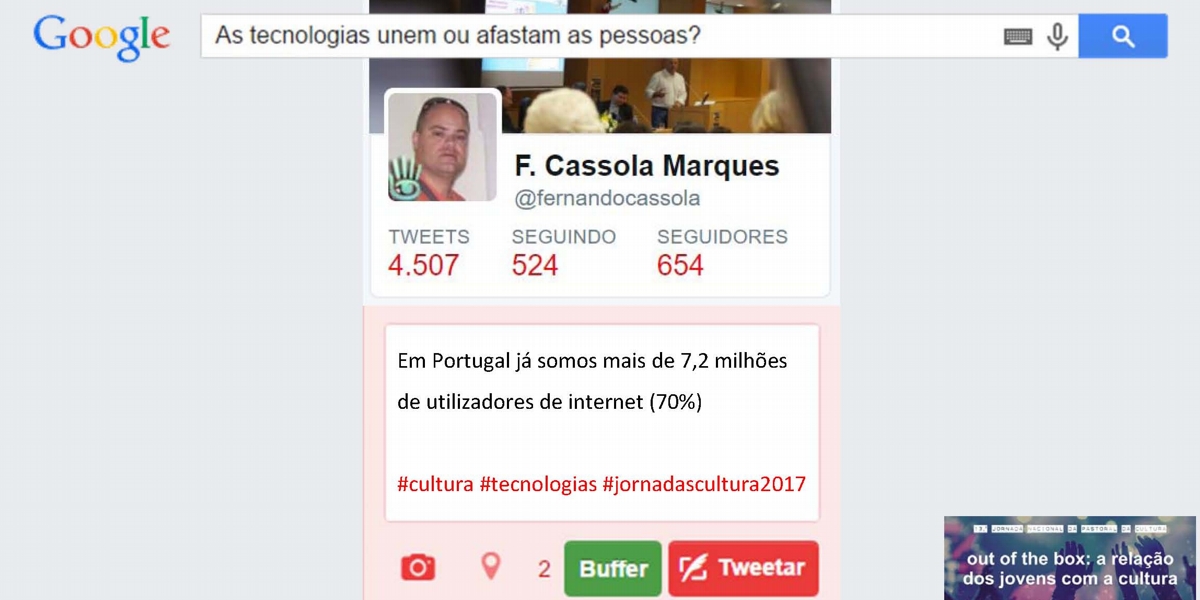Ao sublinhar que muitas instituições só emergem na internet quando têm algum evento a publicitar, Cassola Marques frisou a necessidade de se «estar presente» continuamente, com «cuidado» na «partilha com qualidade» de conteúdos.