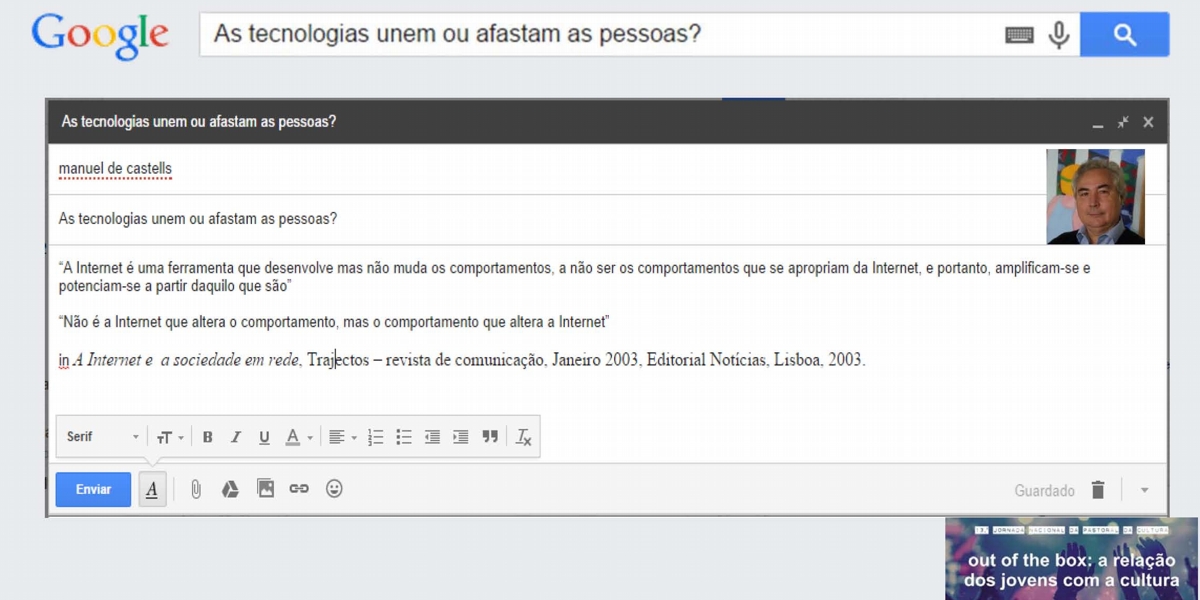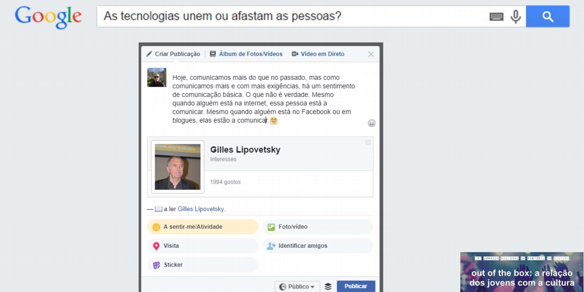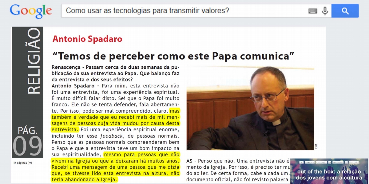 No encontro dedicado ao tema "'Out of the box: A relação dos jovens com a cultura", o especialista acentuou que «o testemunho é o ponto de partida para a nova evangelização no mundo digital».