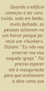 “Quando o edifício começou a ser construído, todo em betão, muito fechado, as pessoas acharam-no um horror porque parecia um «bunker». Diziam: ´Eu não vou enterrar-me vivo naquela igreja'.“ Foi preciso esperar até à inauguração para que aceitassem a obra como sua. “Nesse dia fiz uma visita ao espaço, havia uma afluência enorme de pessoas e estavam muito entusiasmadas. Comentavam: 'A igreja é muito melhor por dentro do que por fora, ninguém imaginava.' Os habitantes fizeram duas festas e apropriaram-se rapidamente daquele local de culto”.