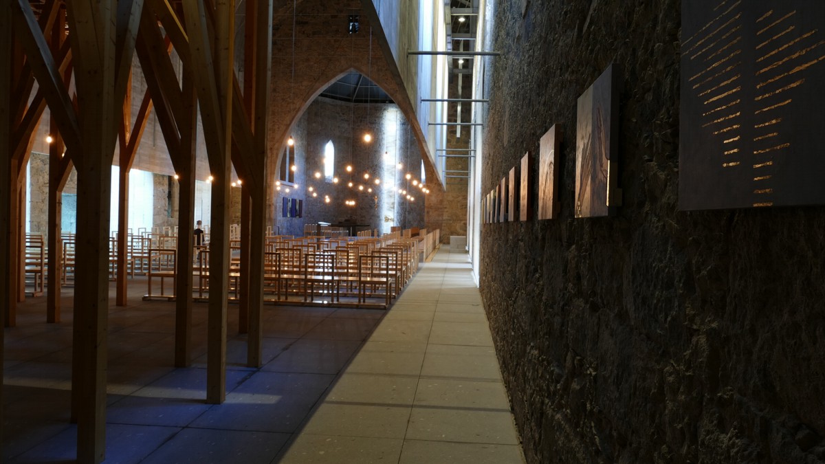 A Via Crucis requer uma forma-linguagem dramática: fortes contrastes, formas gráficas, uma mensagem clara, tons escuros, imagens descamadas até ao essencial.