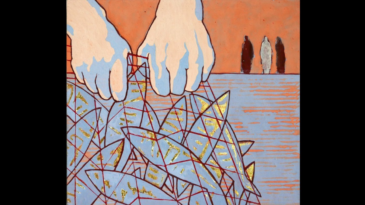 7. A pesca junto ao lago de Tiberíades. Os pescadores estavam com pouca sorte: a faina é fraca. Jesus aparece e diz-lhes que lancem as redes para o lado direito do barco. Fazendo o que ele diz, apanham grande quantidade de peixes e reconhecem-no.