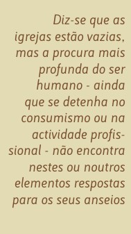 A escritora considerou que tudo o que é doutrina rígida e autoritarismo é necessário para uma coerência histórica, mas pode afastar aqueles que procuram soluções consistentes para a sua espiritualidade. “Diz-se que as igrejas estão vazias”, mas a procura mais profunda do ser humano – ainda que se detenha no consumismo ou na actividade profissional – não encontra nestes ou noutros elementos respostas para os seus anseios.