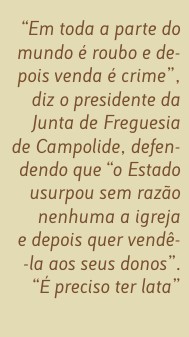 “Em toda a parte do mundo é roubo e depois venda é crime”, diz por sua vez o presidente da Junta de Freguesia de Campolide, defendendo que “o Estado usurpou sem razão nenhuma a igreja e depois quer vendê-la aos seus donos”. “É preciso ter lata”, atira Jorge Santos, que tal como o Provedor de Justiça é a favor da cedência gratuita e definitiva do imóvel à irmandade.