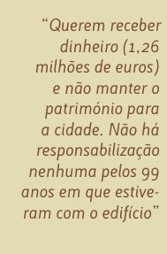 O presidente da Junta de Campolide, eleito pelo PSD, diz que concorda “a cem por cento” com o conteúdo da carta de Nascimento Rodrigues, que considera ser “mais uma” manifestação “da sua grande coragem”. Jorge Santos adianta que a acção judicial que está a preparar contra o ministério das Finanças, por não cumprir a obrigação de conservar, cuidar e proteger um imóvel classificado de que é proprietário (como estipulado por Lei), deverá dar entrada no Tribunal “antes das férias judiciais”.